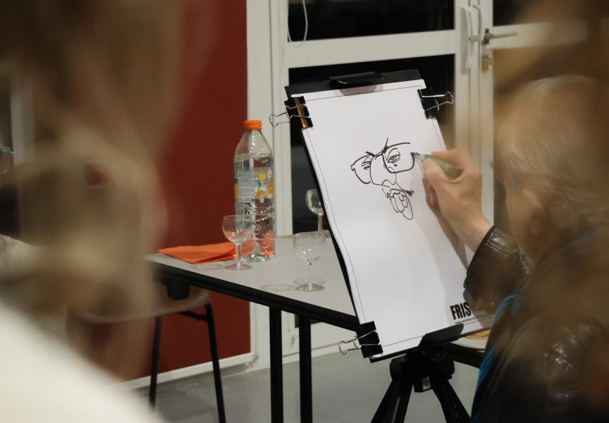 La soirée s’est conclue dans une ambiance conviviale autour du partage de la galette des rois, favorisant les échanges entre agents et élus. Deux animations étaient proposées : La Boîte à Vinyles, une prestation musicale participative autour du disque et du bar à vinyles, et le caricaturiste Fris, qui a fait le show et su faire rire l’assemblée avec ses caricatures réalisées rapidement, en quelques coups de crayon, avec la technique de la bande dessinée.